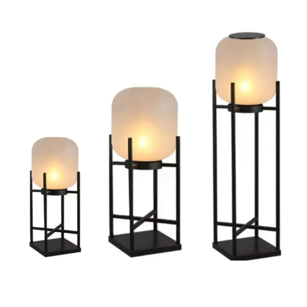 Disponibles en trois tailles différentes, vous pouvez varier les hauteurs selon vos préférences. Résistante aux intempéries, chaque lampadaire extérieur est muni d'un abat-jour blanc opalin, avec un éclairage à LED interne. Ce verre au style dépoli émane une luminosité douce et tamisée, ce qui renforce l'ambiance lumineuse de votre extérieur à chaque instant passé dehors à profiter du soleil couchant, ainsi que de la nuit qui s'ensuit.