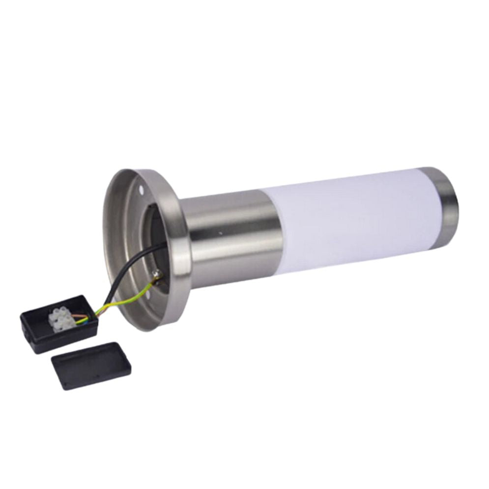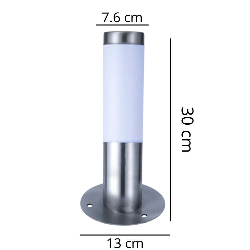 Telle une borne lumineuse au design contemporain, il éclaire le jardin ou la terrasse avec un flux lumineux constant et confortable pour les yeux. D'une hauteur de 30 cm et d'un diamètre de 7,6 cm, ce lampadaire est conçu en acier inox, doublé d'une finition à base d'aluminium brossé afin de résister aux intempéries ainsi qu'aux diverses températures. Le diffuseur de lumens est quant à lui revêtu d'une conception en verre dépoli, assure une répartition harmonieuse de la lumière LED aux alentours.