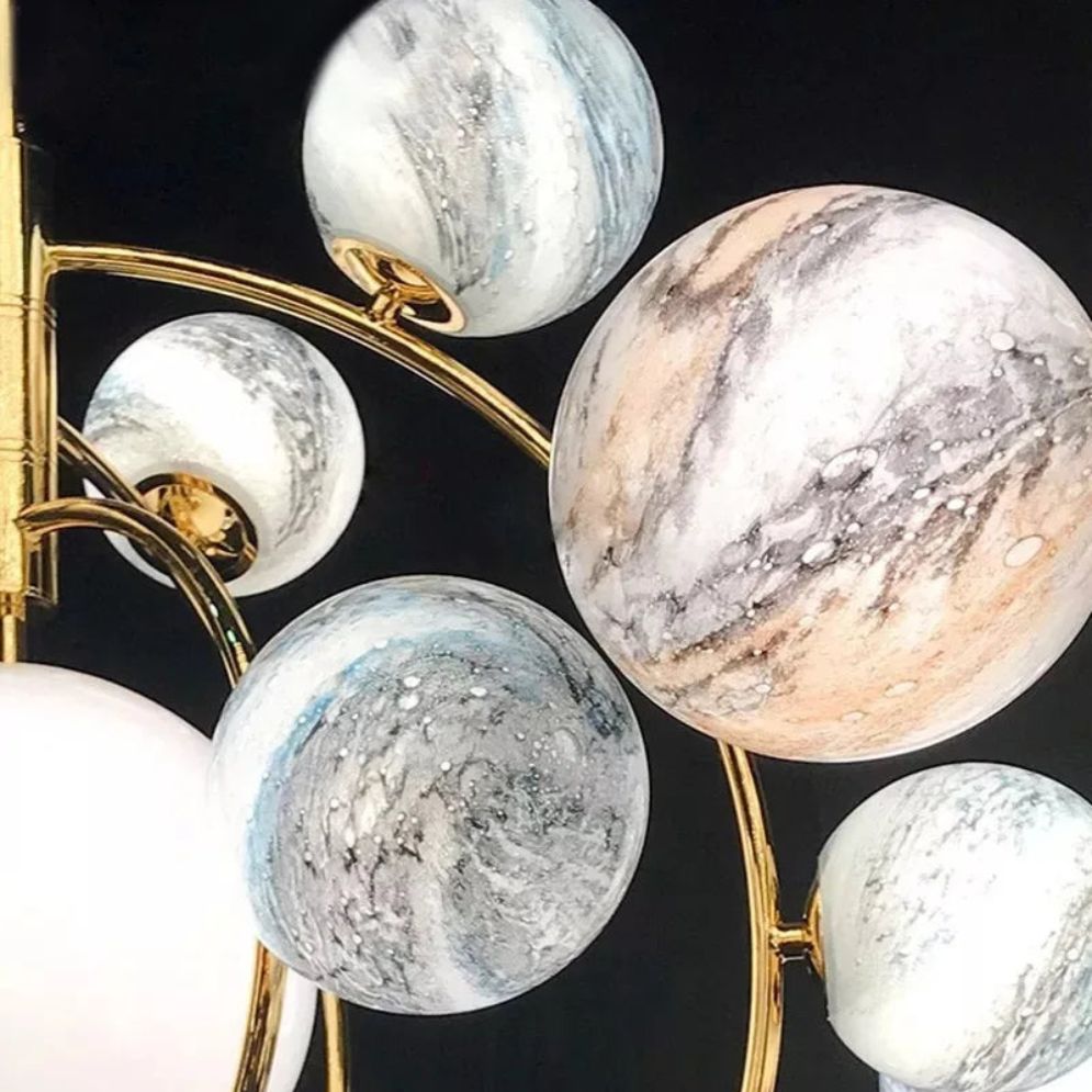 Plus généralement, chaque boule en forme de planète présente sur ce lustre est conçue dans un verre coloré, que l'on aime voir scintiller une fois cette lampe suspendue allumée ! Au sein d'un salon, d'une chambre à coucher ou d'une cuisine décorée, cette lampe à encastrer sera une valeur sûre pour créer la surprise !