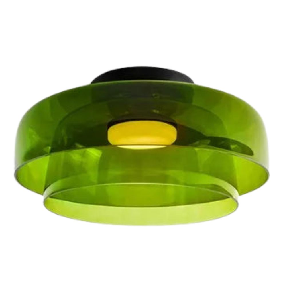 Proposée dans un ton ambré, ce plafonnier en verre est également décliné sous un modèle en noir ainsi qu'en verre émeraude, pour créer une ambiance naturelle, transformant la lumière blanche en une douce lueur dorée qui enveloppe délicatement votre espace. Même éteint, ce luminaire reste un élément décoratif remarquable grâce à ses reflets cuivrés et sa silhouette élégante.
