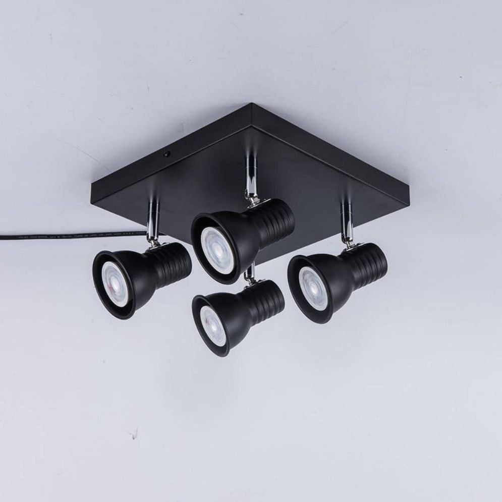 Ce modèle de spot encastrable est idéal pour projeter une ambiance douce dans toute la pièce.Monté sur un socle carré métallique dans un format épuré, cette lampe de plafond d'un coloris noir mat est doté de quatre spots LED, chacun directionnels. Ils peuvent tous pivoter à 360°, mais aussi s'incliner jusqu'à 90.